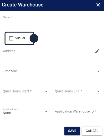- Virtual: Checkbox that determines the warehouse type. Toggling this option dynamically updates the form to show or hide type-specific attributes:
