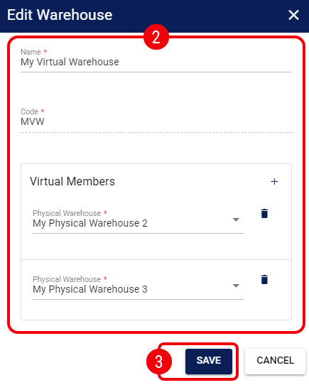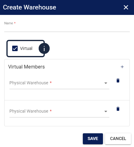 - Physical Warehouse Dropdown: Select the desired physical warehouse to include in the virtual pool.