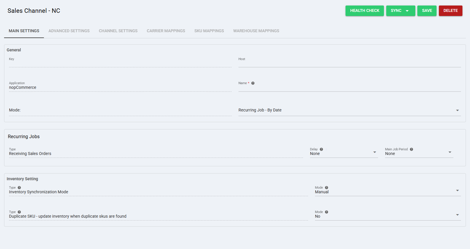 To connect nopCommerce, first create the Sales Channel connection, and then set up its parameters.