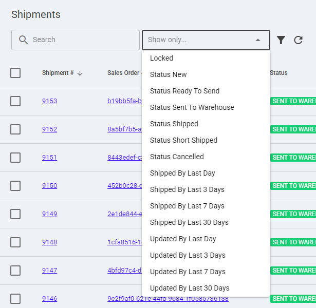 When you manage Shipments, you might need to find a specific one or groups of them.