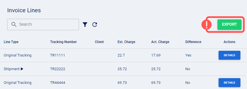 - Line Type: Type of charge (e.g., Return Tracking, Service Charge, etc).