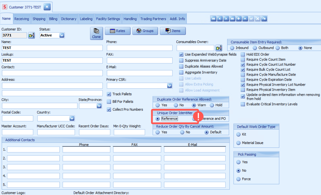WARNING: Do NOT reuse the same Reference Number when canceling and regenerating an order in SynapsePO numbers can be reused ONLY if Synapse’s Unique Order Identifier is set to Reference, as shown in the screenshot below: