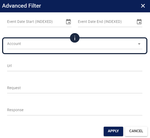 ![]() | When using the Organization View, the Advanced Filter dialog will display an Account dropdown. This allows you to filter the results for a specific account without manually typing an API Key. If an account is already selected in the header, this dropdown is hidden.![]() | |