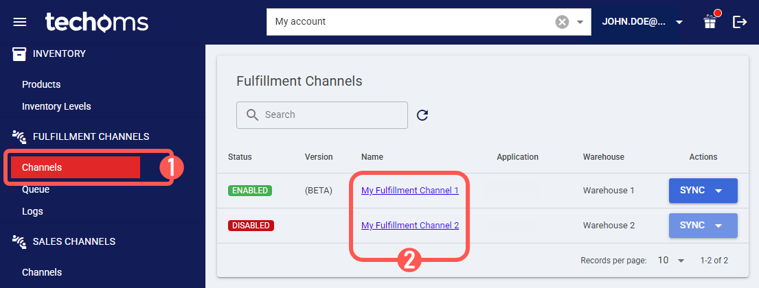 1. Click Channels from the left menu under the Fulfillment Channels section.
