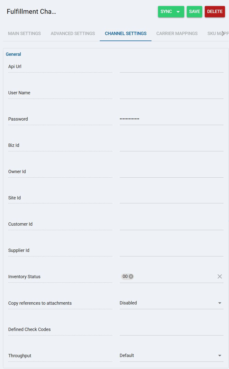- Channel Settings: Allows managing the channel integration. All fields must be completed for the integration to work properly.