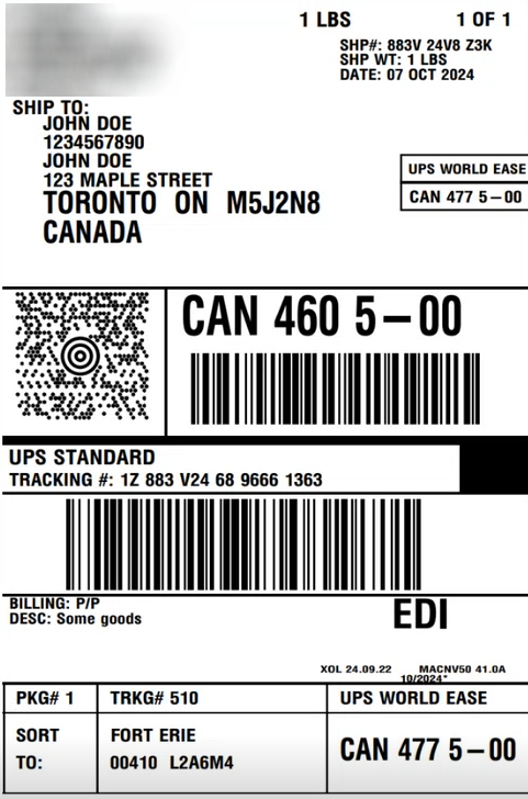 Even though the process is the same as a Small Parcel regular shipment, a UPS WorldEase special label will be generated: