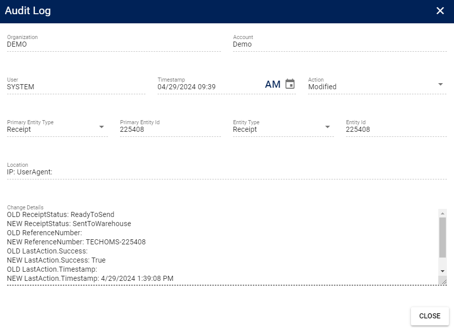 NOTE: You may use the Search bar if you have an extensive log to review to find an entry quickly.The details of the message will be detailed in a scrollable pop-up message: