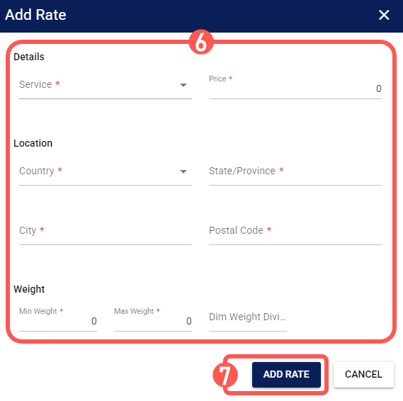 - When Rates are returned, taxes and markups can be also applied, depending on the Carrier response and Billing Account Setup
