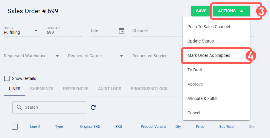 WARNING: Once a Sales Order is marked as Shipped, it can no longer be edited, cancelled, or deleted — no further modifications will be possible. Proceed with caution.