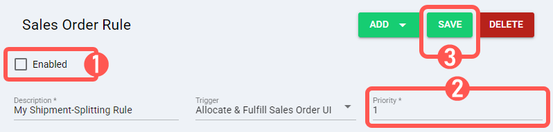 By following the steps below, you can define the maximum number of shipment splits and set the criteria for splitting. This is achieved by setting up a sales order rule and combining the Split Shipment Action with other actions to implement different business logics.