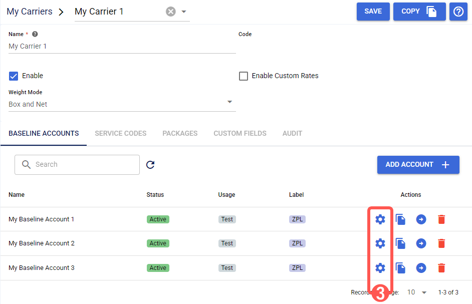 WARNING: Carrier custom rates (Rates tab records) are not logged.