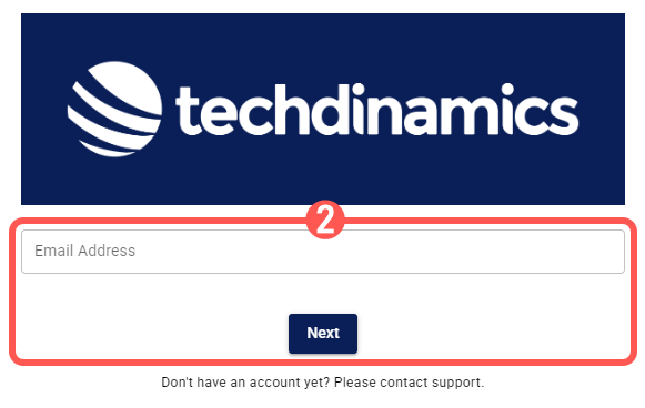 You are now logged in. From now on, always use the Techdinamics button to access your techSHIP portal. You will be prompted to enter your email address and the password you set in step 4.