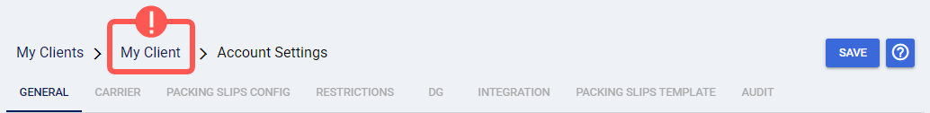 This is useful when navigating deeply nested settings, allowing you to move between levels or switch entries efficiently. For example: If you are editing a Billing Account and you need to go back to its Client page, click on its name to return to that section.