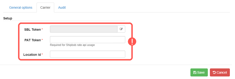 - SBL (Shipping API) Token -> Complete with the SBL Token, used for shipping, as provided by ShipBob