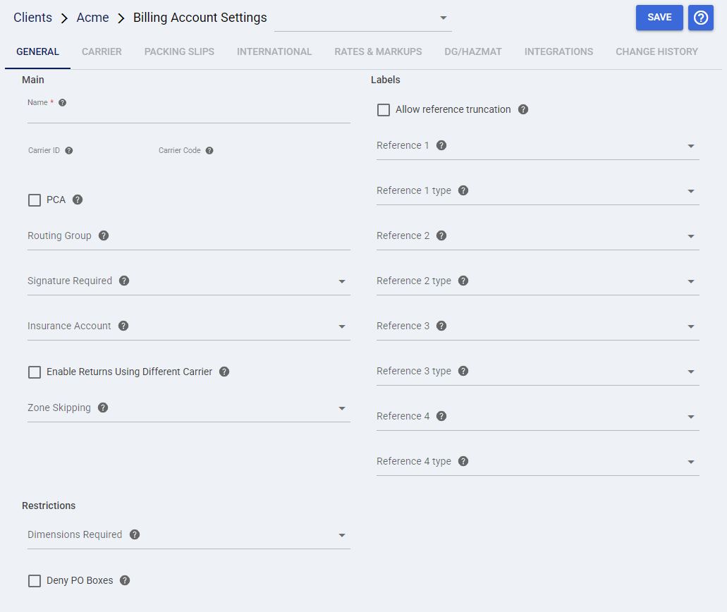 | LABELS | Allow Reference Truncation | If checked, automatically shortens reference values that exceed carrier character limits. | |