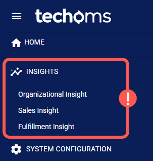 The Insights section in techOMS provides powerful, interactive dashboards to monitor key sales metrics, analyze your fulfillment performance, and get a clear overview of your operational health. This article shows you how to access them.